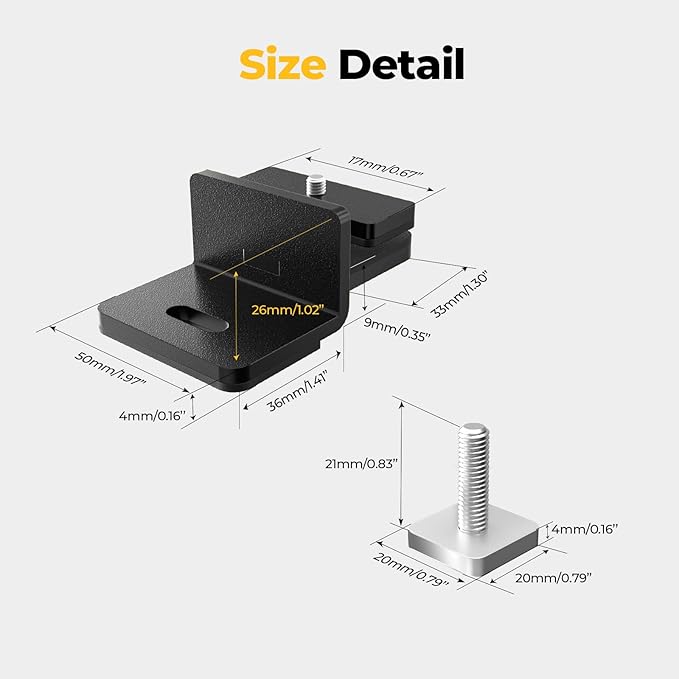 - Package Include: You will receive a package including 4 solar panel mounting support brackets with pre-set T-bolts, 2 self-tapping screws for DIY, 2 Allen keys, and 1 wrench