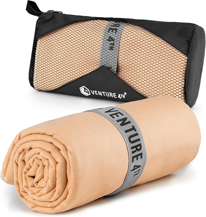 VENTURE 4TH Quick Dry Towel. Microfiber Travel Towel Ideal for Camping, Hiking, Backpacking, Gym. Lightweight & Fast Drying Travel Towels for Body. Compact & Easy to Pack - Beige Extra Large