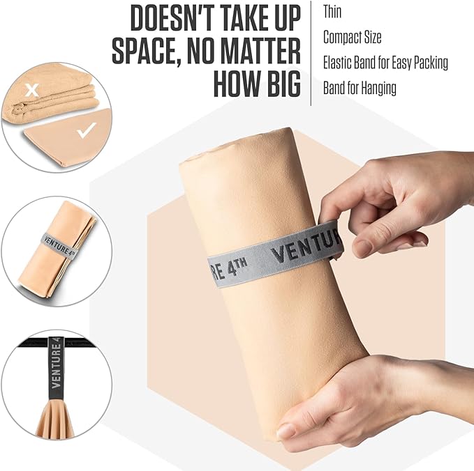 VENTURE 4TH Quick Dry Towel. Microfiber Travel Towel Ideal for Camping, Hiking, Backpacking, Gym. Lightweight & Fast Drying Travel Towels for Body. Compact & Easy to Pack - Beige Large