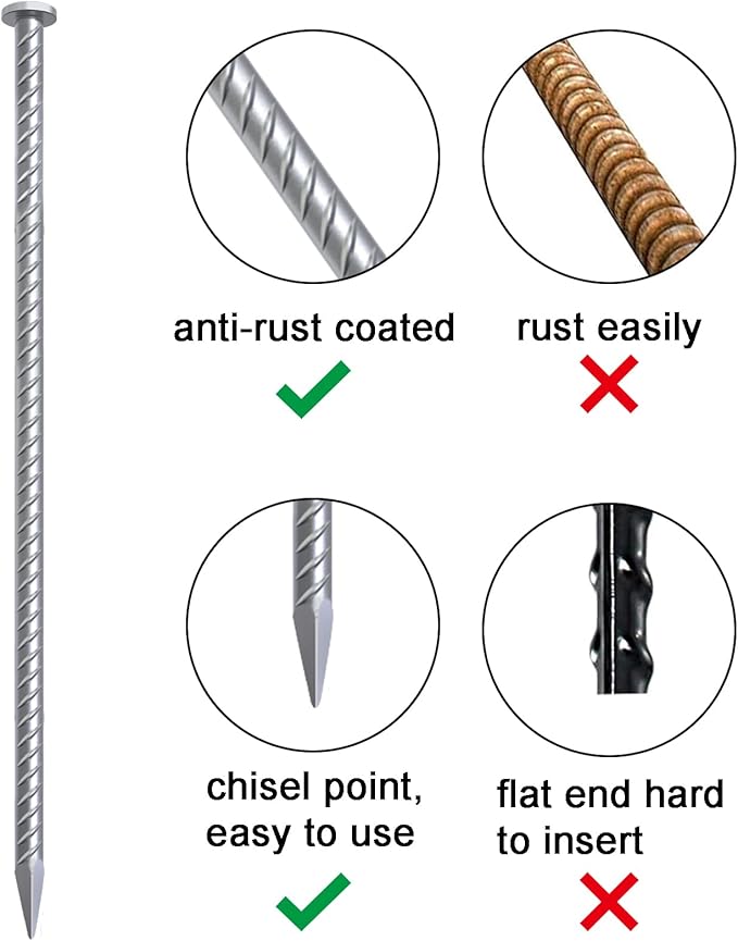 - Chisel Point End - 45 degree end makes anchoring spikes diving into all ground quickly and remove the anchors. Such as asphalt, cement, wood, sand