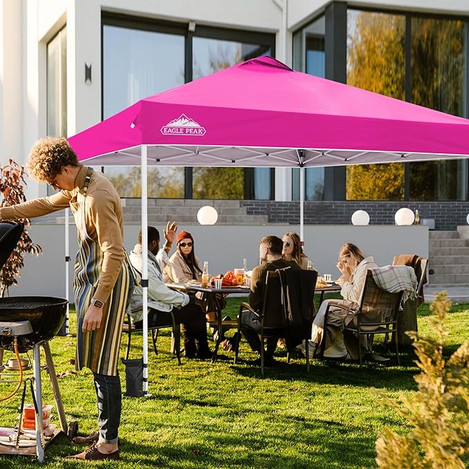 EAGLE PEAK Pop Up Canopy Tent with Wheeled Carry Bag, 8 Stakes, 4 Ropes, 4 Weight Bags, Easy Set Up Tent Canopy, 12x12 ft, 144sqft of Shade, Pink