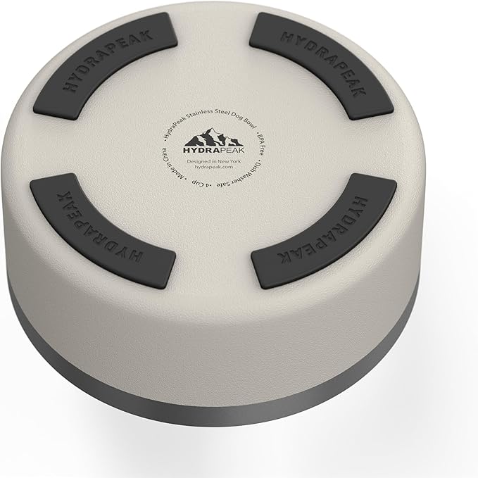 Hydrapeak Dog Bowl; Non Slip Stainless Steel; Water and Food Dish; Large Sized and Small Dogs; 32oz 64oz; Multiple Sizes; 4 Cup | Stone