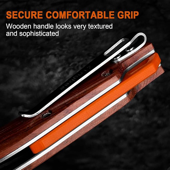 - SANDALWOOD HANDLE: This pocket knife for women men comes with a handle that features vintage sandalwood for a comfortable, secure, ergonomic and solid grip when in use. The handle not only has an excellent grip, but also has a high art collection value
