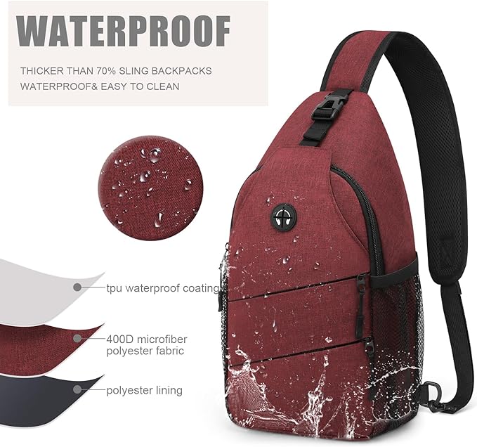 - Durable & Waterproof Material: Our chest bag are built to last with thick, durable, and abrasion-resistant fabric. The material is also waterproof and tear-resistant, whether you’re hiking through rough terrain or commuting in the rain, our backpacks will keep up with you, ensuring that your belongings stay safe and dry. The backpacks are designed to be lightweight and comfortable, making them perfect for long hikes or daily commutes.