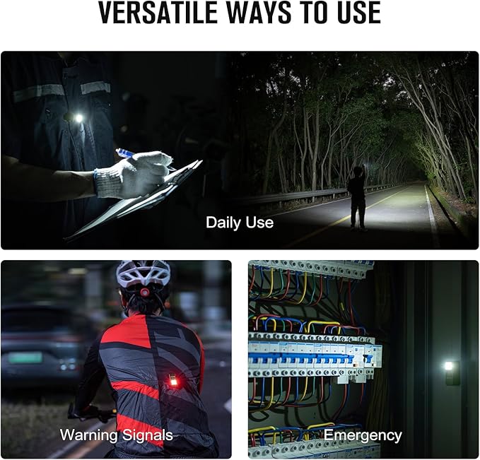 - [Multiple Ways to Carry] The versatile clip enables users to clip, hang, or magnetically attach the light to iron objects. It has extensive application scenarios, such as hiking, providing fill light for photos, cycling, reading, and safety warnings
