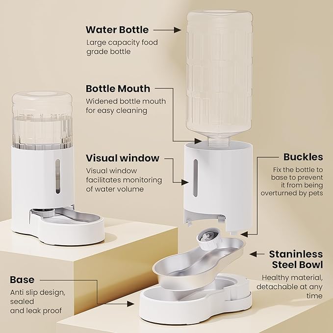 - [Drinking Safe] We take care of pets' drinking water health. The water bowl is fully attached to the base and made of food grade 304 stainless steel. Other components also use pet friendly materials.