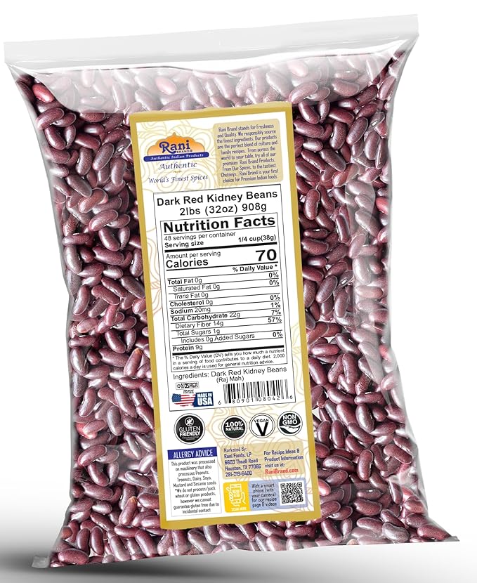 Rani Red Kidney Beans, Dark 32oz (2lbs) 908g ~ All Natural | Vegan | Gluten Friendly | NON-GMO | Kosher | Raj Mah