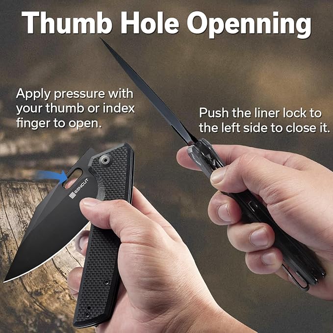- [Thumb Hole Openning] Our folding knife features a Thumb Hole for fast, reliable deployment via a smooth ball-bearing pivot system.