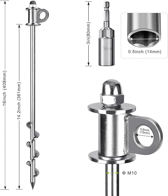 - 【Easy to Install and Remove】You can easily screw these spiral anchor into the ground with a drill and screw them out again when you don’t need them. You can install them in a few minutes, saving your time and effort