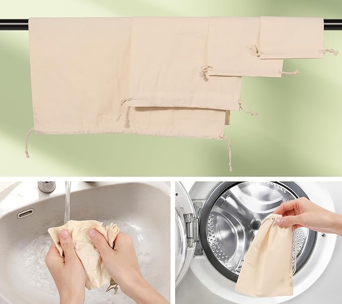 - 5. Reusable and Eco-Friendly: The reusable nature of these cotton bags makes them an eco-friendly choice, contributing to sustainable living practices. They are an excellent alternative to single-use plastic bags, promoting a greener and more environmentally conscious lifestyle.