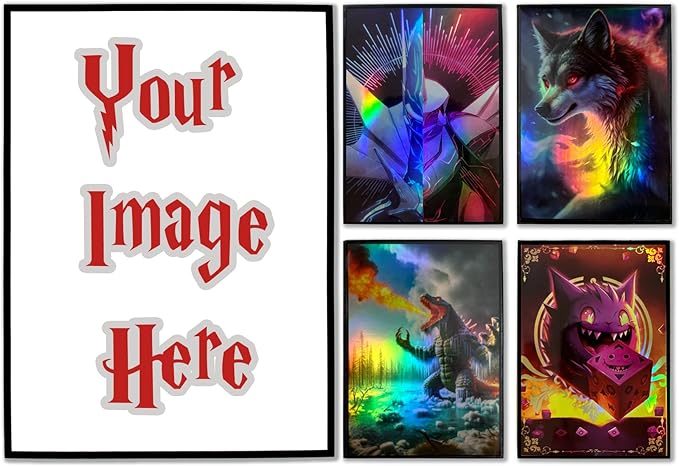 Custom Holographic Card Sleeves, Laser Flashing Shiny Design, Make Your Own Trading Collectible Card Protector, Compatible with Yugioh & Magic The Gathering – MTG, TCG, OCG
