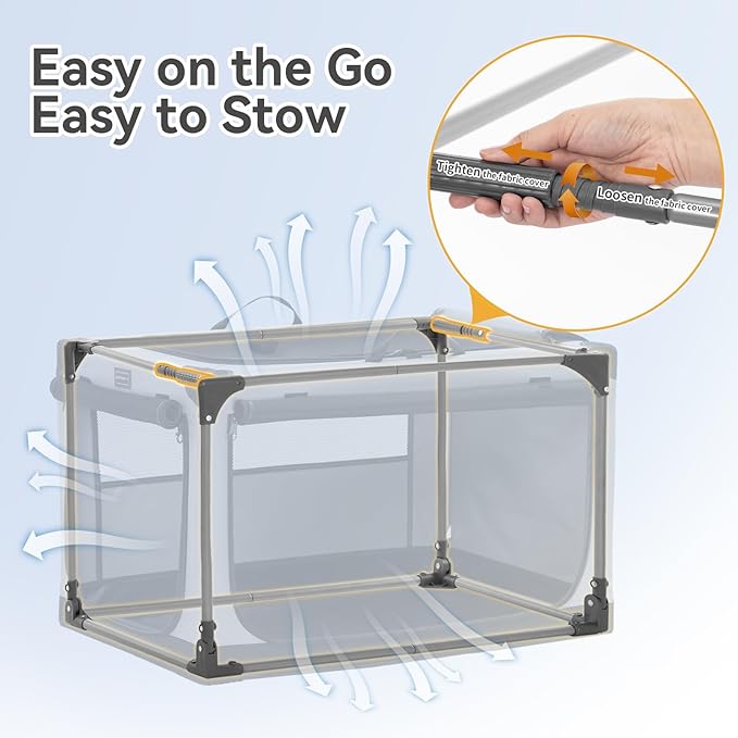 - Our soft dog crate features a patented spiral head design that allows you to adjust the tightness of the cloth cover, accommodating slight production variances and multiple washes. This ensures compatibility and a perfect fit. Simply unfold the product, secure the frame, and twist the spiral tubes to complete setup.