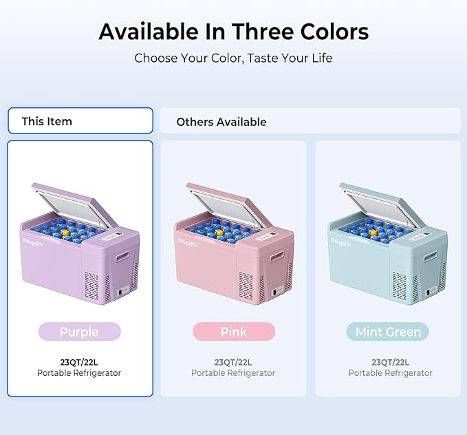 BougeRV Purple 23Quart Portable Refrigerator, 12 Volt Fridge 22L, Portable Freezer Compressor Cooler 12/24V DC 110~240 Volt AC for Truck Van RV Camper -8℉~50℉