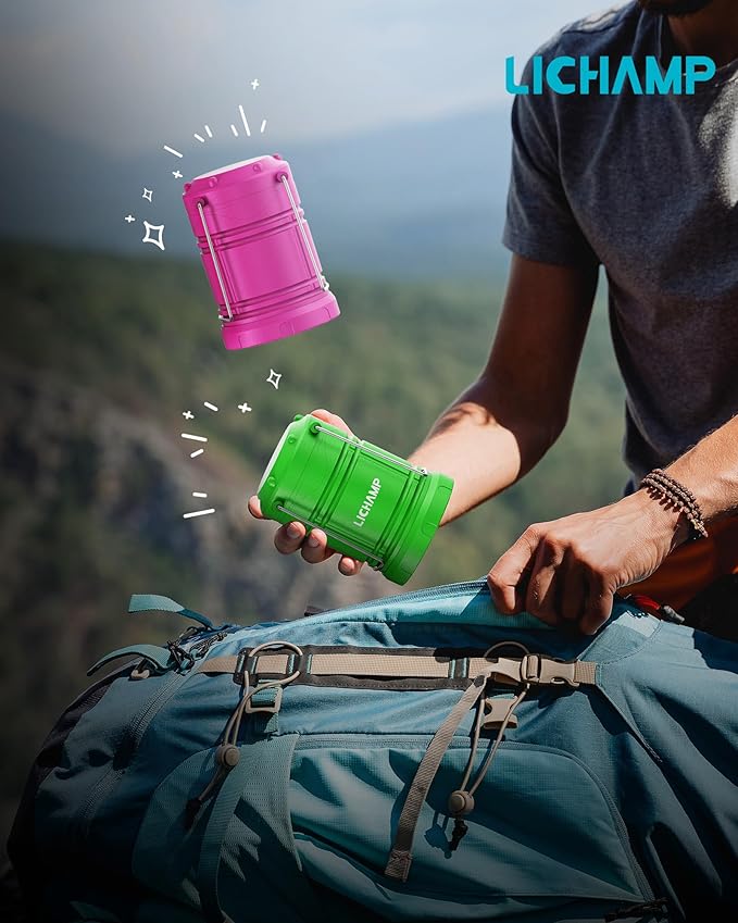 Lichamp 4 Pack LED Camping Lanterns, Battery Powered Camping Lights LED Collapsible Flashlight Portable Emergency Supplies Kit, A4PK