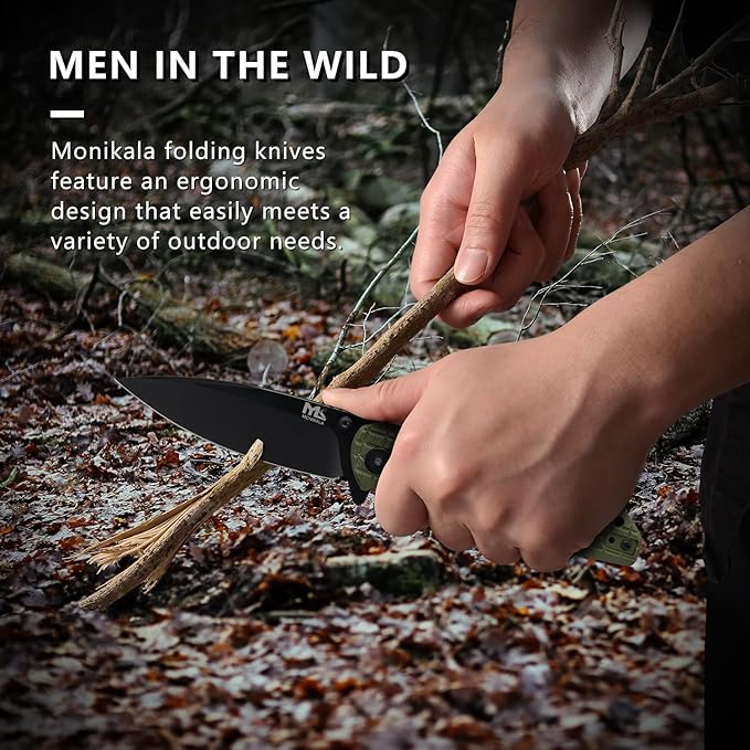 - [Smooth One-Handed Operation]: Equipped with ceramic ball bearings and a liner lock mechanism, the Monikala Folding Knife allows for fast and secure one-handed opening and closing, enabling quick deployment in various situations.