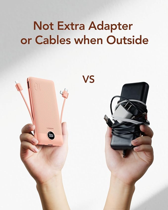 - 【Wide Compatibility】VEGER portable battery charger is widely compatible with All iPhone, iPad, Samsung, Google Pixel, tablets, just connected to your device with the cable built in and the external battery would fix with different devices to get fastest charging.