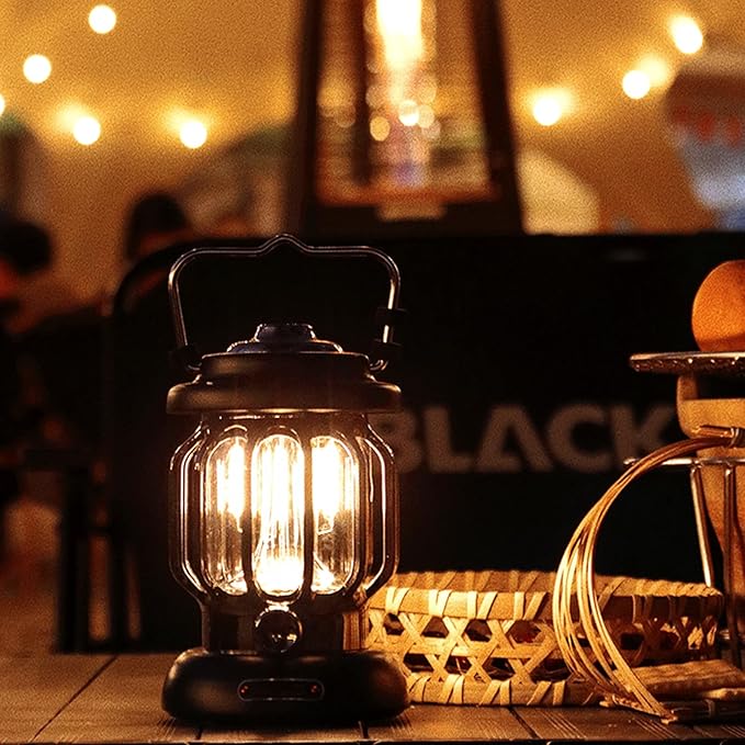 Camping Lantern Lights LED Lamp Type C Rechargeable, Emergency Light 8-130h Runtime for Power Outages, Outdoors Camping Lantern (Black)