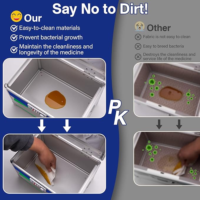 - STURDY AND DURABLE: Made of high-quality aluminum alloy + MDF + plastic, detachable plastic tray, our medical organizers is constructed with 4 steel corners, aluminum reinforcement, and an extra strong combination lock to ensure your materials are safe