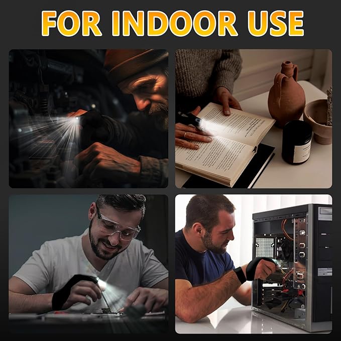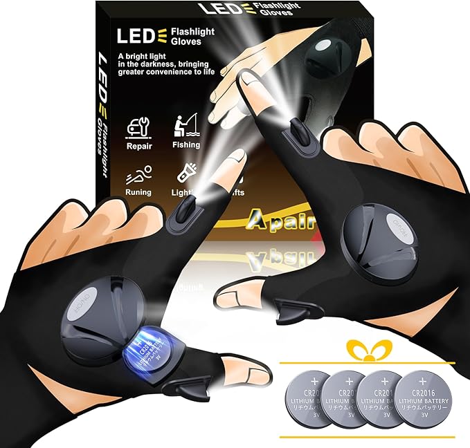 - 【A Helpful Third Hand】 The daily waterproof led gloves with two led lights on each hand and each LED lamp reaches 10 lumens. Just put on the gloves and turn on the switch button, no more worrying about doing night fishing, camping, plumbing construction, reading, tinkering with electricity, etc. Cool mechanical gadget gifts for car guys, plumbers, firefighters, etc. Unique birthday or anniversary gift ideas for your husband or wife