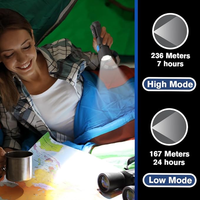 Bright Star Razor Go All-Purpose LED Flashlight – 21,000 Candela Beam, 24-Hour Runtime, Magnetic Hands-Free Base – Heavy-Duty Utility Light with AA Batteries Included – Made in USA
