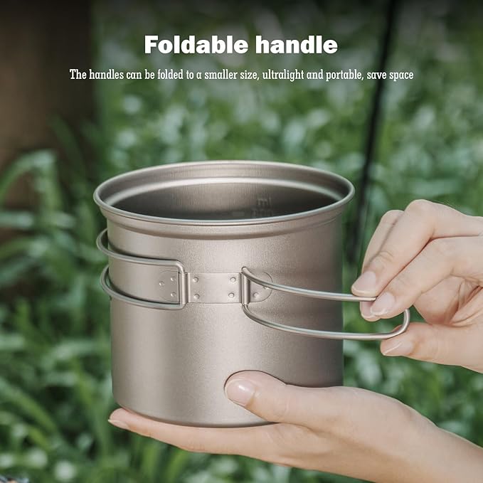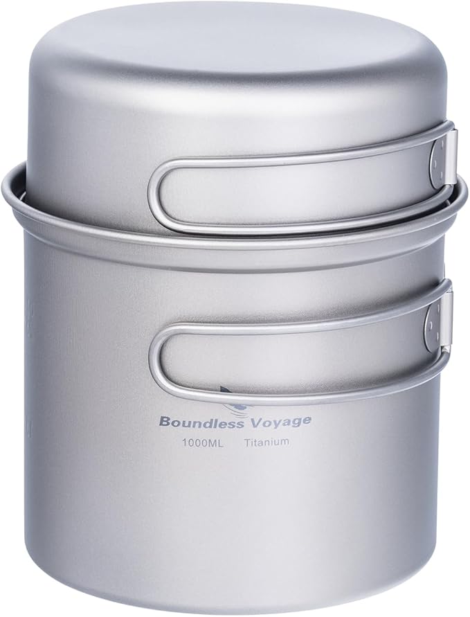 - Ultralight Titanium Camping Cookset (1000ml+500ml) - Perfect for 1-2 backpackers! Weighs just 181.5g with premium titanium construction - rustproof, odorless, and ultra-durable. The 1000ml pot handles main meals while the 500ml pot boils water. Compact nesting design saves space. Ideal for hiking, camping, and outdoor adventures.