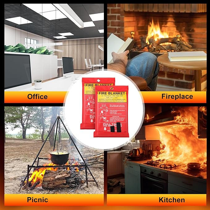 - Survival Emergency Blanket: fire blanket for home and kitchen can be applied to cover fire without mess from extinguishers, it can stop liquid or grease fire immediately by cutting off oxygen supply to the fire, works in different types of fire as well; Fire resistant blanket can be applied as a thermal or heat shield, a must have in your house fire safety blankets for protection