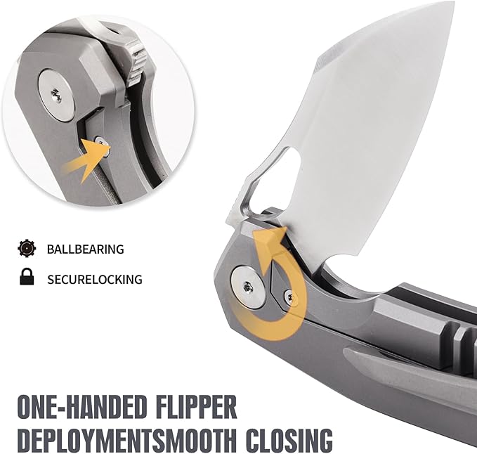 - Ergonomic Design: The handle of this folding pocket knife is crafted with a combination of titanium, providing a comfortable grip and optimal control during use.