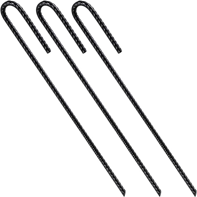 Rebar Stakes U/J Hook Extra Heavy Duty,(10pcs) 12 inch x 1/4 inch Rust Proof Coated Steel Ground Stakes Ground Anchors, Garden Stake Metal Stakes Tent Stakes Trampoline Anchors (J-Hook)