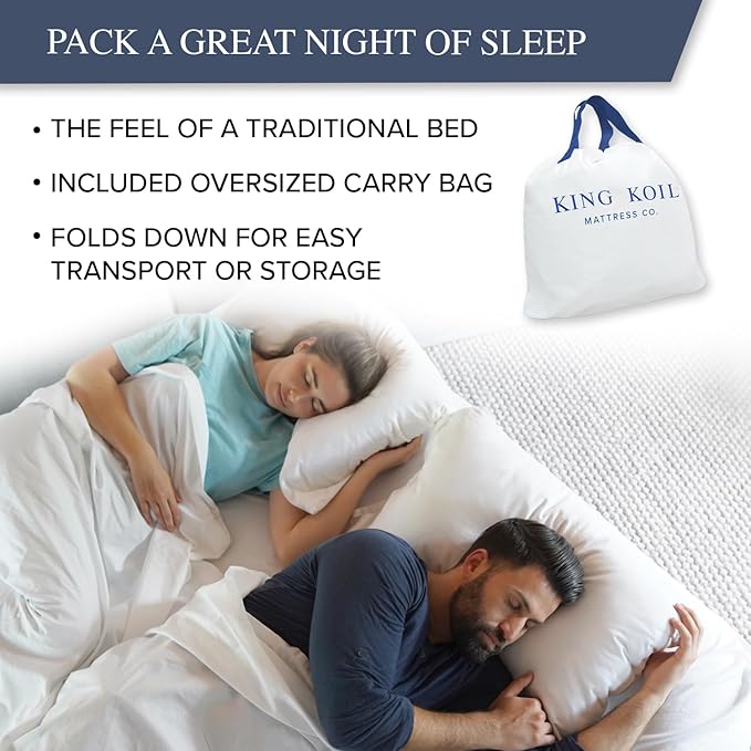 - King Koil - Unmatched Luxury & Integrated Comfort: Experience a refined sleeping experience with our queen air mattress, featuring a sumptuous pillow top and built-in pillow that deliver bespoke head and neck support, crafted for the discerning sleeper.