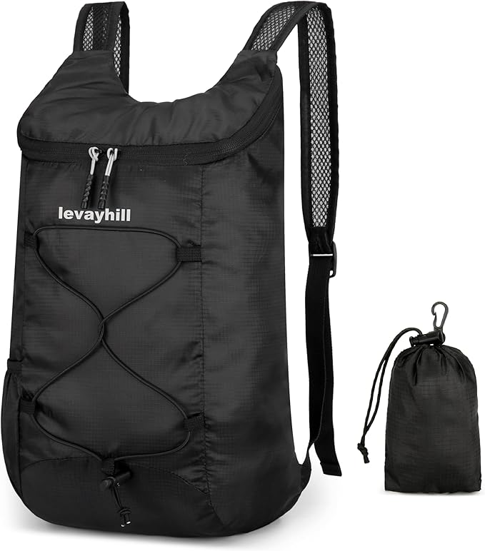 16L Lightweight Foldable Hiking-Backpack Small Packable-Daypack For Travel,Ultralight Water-Resistant Gym Bag Men Women Easy Carry-on (Black)