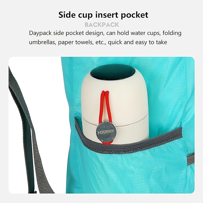 - LIGHTWEIGHT &16 L CAPACITY:The lightweight hiking daypack weighs only 2.82 ounces.unfold size:10.23 (L)*15.75(H)*5.51(W) inches,after folding size:3.94 (L)*5.51(H)*1.97(W) inches,the bag folds to the size of a sandwich and fits in a pocket;The main pocket to carry what you need,side pockets for water bottles or umbrella