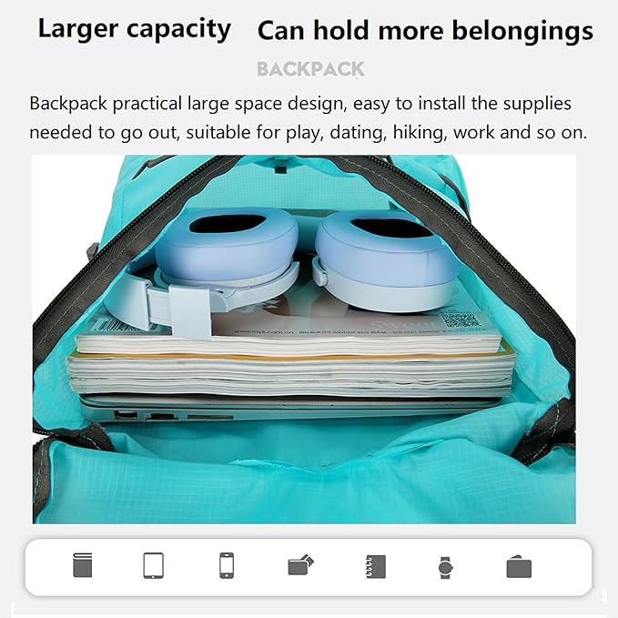- MULTI-PURPOSE BACKPACK:This hiking backpack for both women and men,great for trevel,beach,water sports.Outdoor activities,camping,hiking,cycling,mountaineering climbing,snow skiing,Daily gym,swimming,sports-bag, office present choice;This easy to carry on backpack,fabric like skin,foldable bag can be folded into the backpack,lightweight and no space,be easy to use