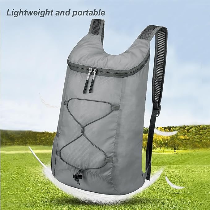 16L Lightweight Foldable Hiking-Backpack Small Packable-Daypack For Travel,Ultralight Water-Resistant Gym Bag Men Women Easy Carry-on (Gray)