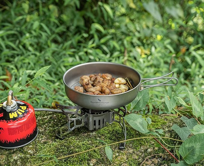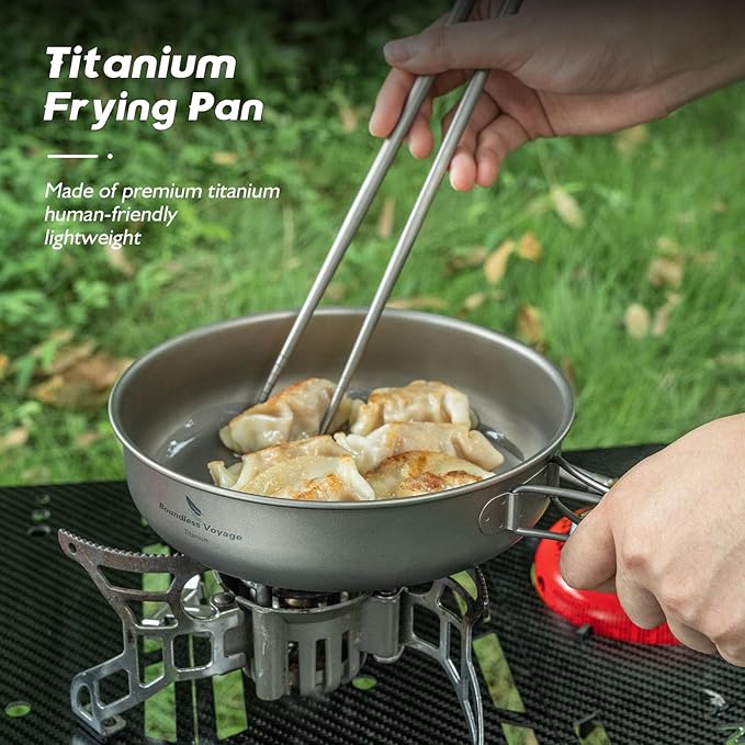 - Ultralight Titanium Camping Frying Pan - Weighing only 125.5g, this 18cm (7 inch) titanium skillet is perfect for ultralight outdoor cooking. Its lightweight design makes it ideal for hiking, backpacking, and travel.