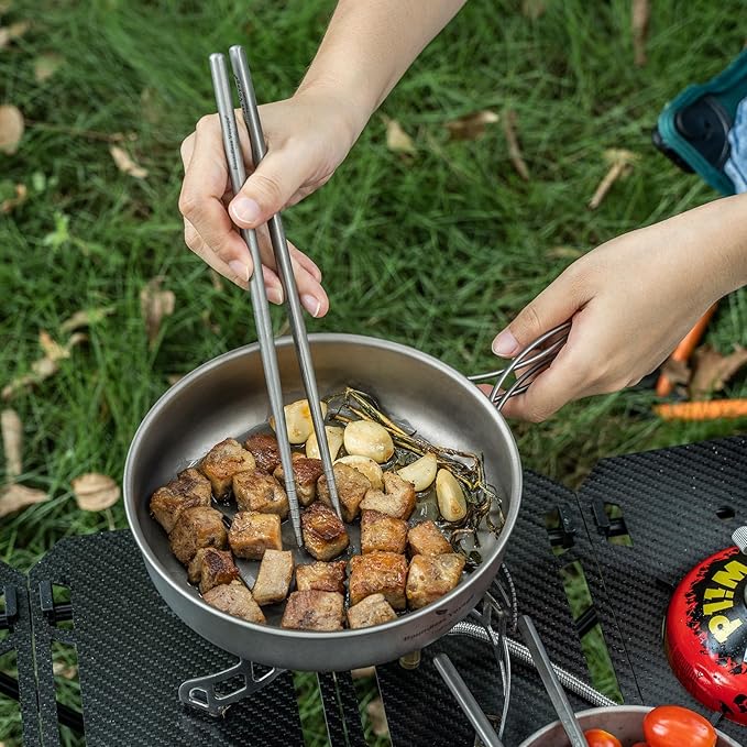 - Durable Titanium Construction - Made from high-quality titanium, this camping frying pan is corrosion-resistant and long-lasting, suitable for all outdoor cookware needs.