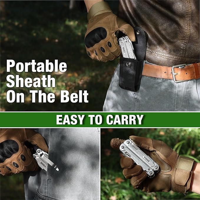 - Portable Sheath & Pocket Clip: The pocket knife multi-tool is foldable, small in size and easy to carry; You can attach it to your pocket with the pocket clip, or put it into the included Oxford sheath and attach it to your belt