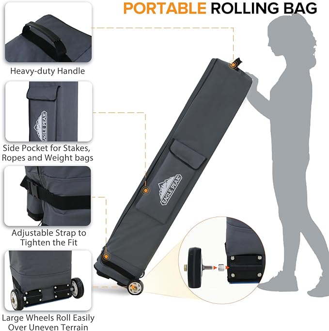 - EAGLE PEAK Promise: EAGLE PEAK offers a 2-YEAR limited after sale protection from the original date of purchase on commercial grade canopies. Unlike many other canopy manufacturers, EAGLE PEAK offers this for our frames, canopies and bags! If you have any other questions, please contact our professional service team.