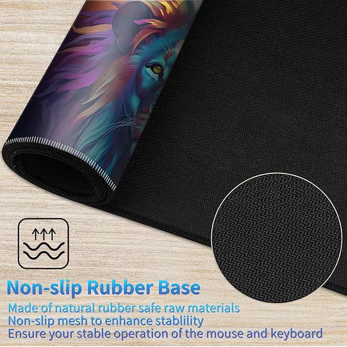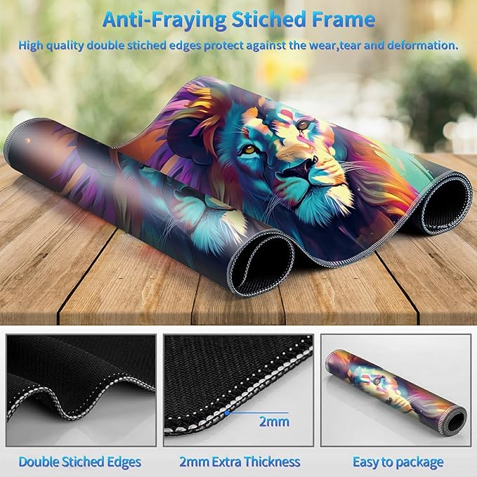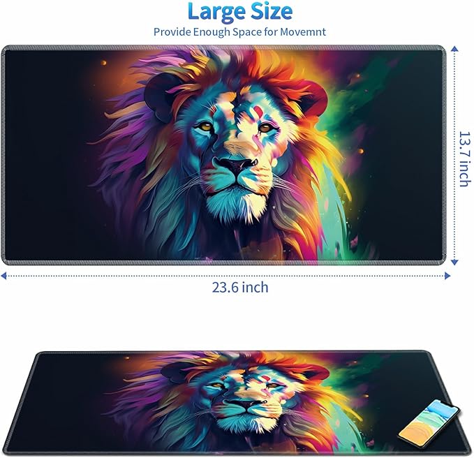 Playmat for MTG, 24 x 14 inches Game Play Mat for MTG TCG and Other Card Games, Trading Card Game Play Mat Desk Mats with Stitched Edges Non-Slip Base, Art Lion