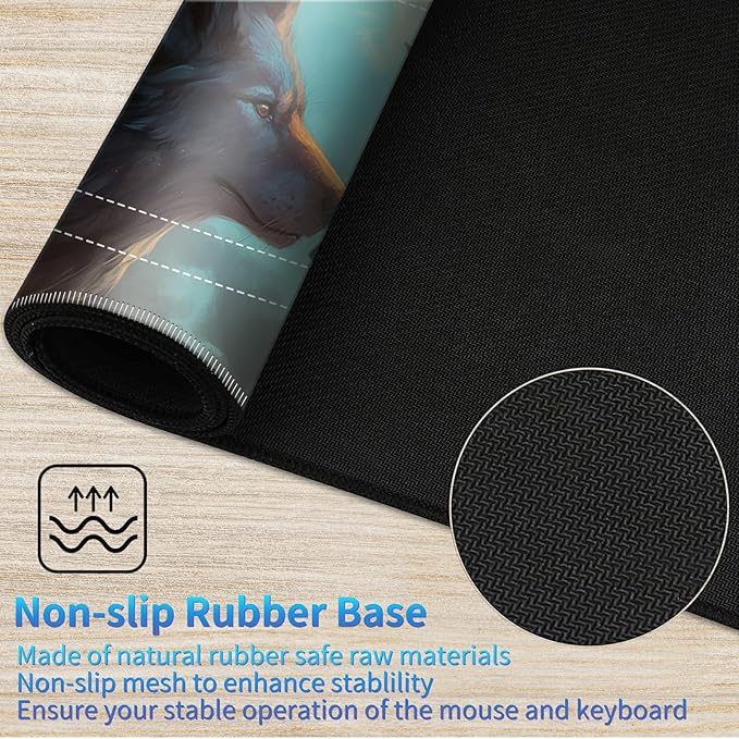 Playmat for MTG with Zones, 24 x 14 inches Game Play Mat for MTG TCG, Trading Card Game Play Mat Desk Mats with Stitched Edges Non-Slip Base, Two Wolfs