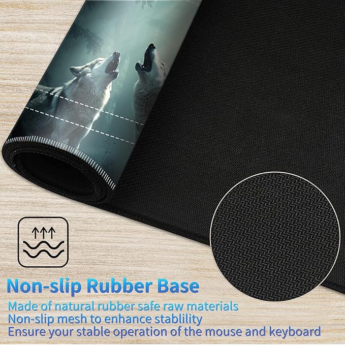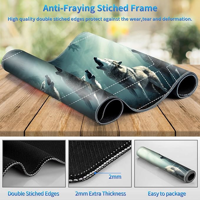 Playmat for MTG with Zones, 24 x 14 inches Game Play Mat for MTG TCG, Trading Card Game Play Mat Desk Mats with Stitched Edges Non-Slip Base, Three Wolfs