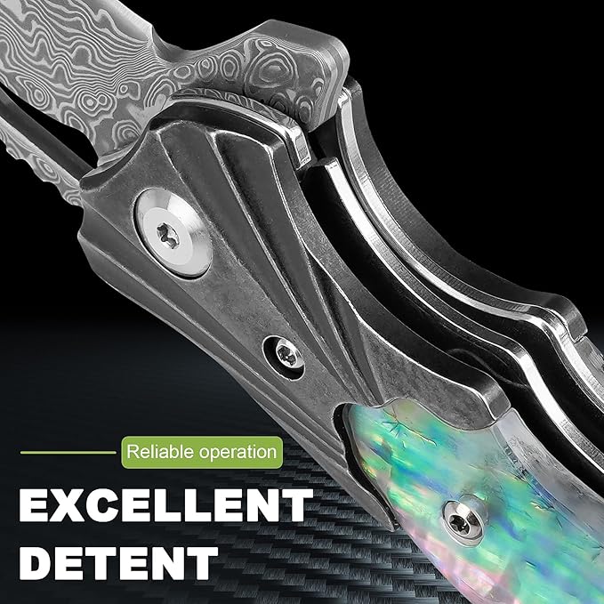 - Beautiful Damascus Steel Blade: The Damascus folding knife blade is combined with 76 layers of carbon steel and VG10 steel core. The unique pattern of the Damascus steel blade is exquisite and distinctive