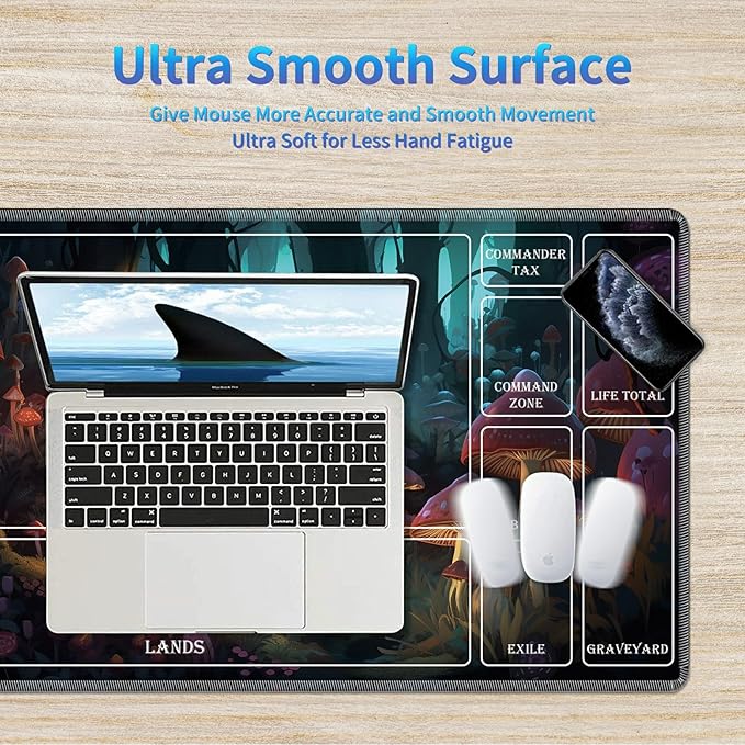 Playmat for MTG with Magic Zones, 24 x 14 inches Game Play Mat for MTG TCG, Trading Card Game Play Mat Desk Mats with Stitched Edges Non-Slip Base, Mushrooms Forest