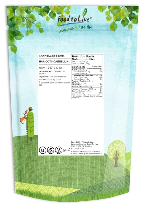 Food to Live - Cannellini Beans, 2 Pounds - Dried White Kidney Beans, Sproutable, Vegan, Kosher, Sirtfood, Bulk. Rich in Fiber, Protein