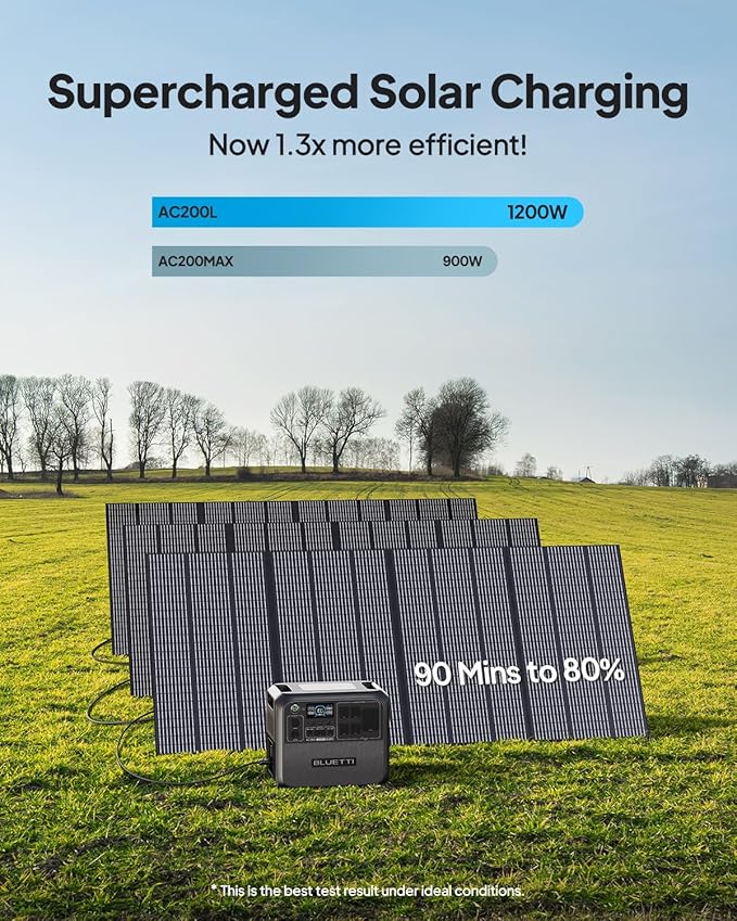 BLUETTI AC200L Solar Generator with 350W Solar Panel (Ships Separately), 2048Wh LFP Battery Backup w/ 4 2400W AC Outlets (3600W Power Lifting), Portable Power Station for Camping, Home Use, Emergency