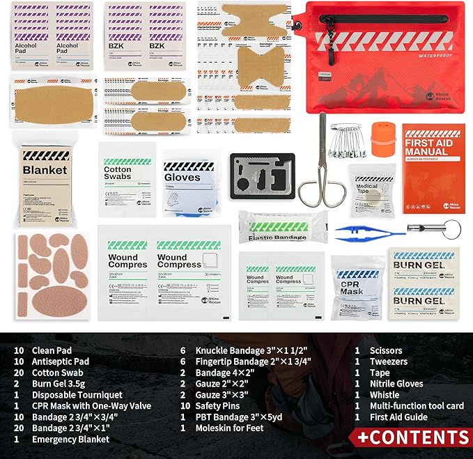 RHINO RESCUE Small First Aid Kit Ultralight Waterproof Medical Kit for Hiking, Backpacking, Cycling, Travel, Vehicles, 114pc
