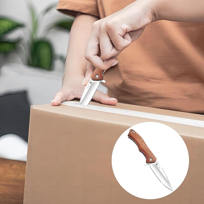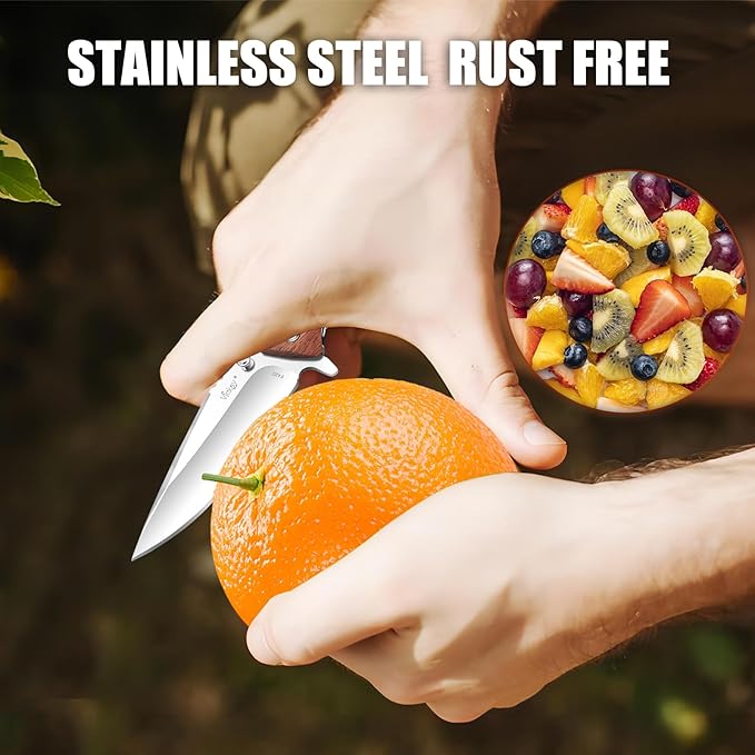 - EXQUISITE ERGONOMICS HANDLE--Made of high-quality natural rosewood which brings you comfortable and perfect anti-slip grip, and the wood handle with excellent workmanship provides exquisite look and upscale texture, so this pocket knife is the best gift for men and women