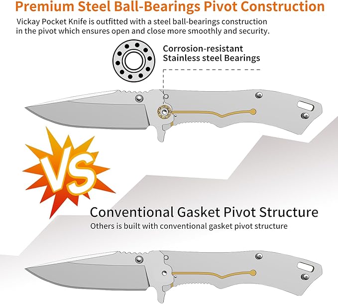 Vickay Pocket Knife for Men, 3.4" 8Cr13MoV Steel Blade, Wood Handle EDC Folding Knife with Liner Lock for Outdoor Camping, Tactical, Hunting, Hiking, Survival - Father?™s Day Gift