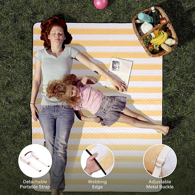 - 【Waterproof & Machine Washable】Outdoor picnic blanket is super easy to clean due to its durable and waterproof backing, easily shake & wipe off dirt, mud, wet grass, and beach sand. And you could put it into washing machine to save your time and free both hands.