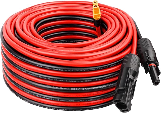 - Premium Material -- The solar cable is made of 10AWG tinned copper wire,which minimizes power loss and improves charging efficiency.And the shell of the xt60 cable is made of high quality PVC material,which is heat-resistant to 105°C,more flexible feature made it can be bends and strapped free-and-easy.