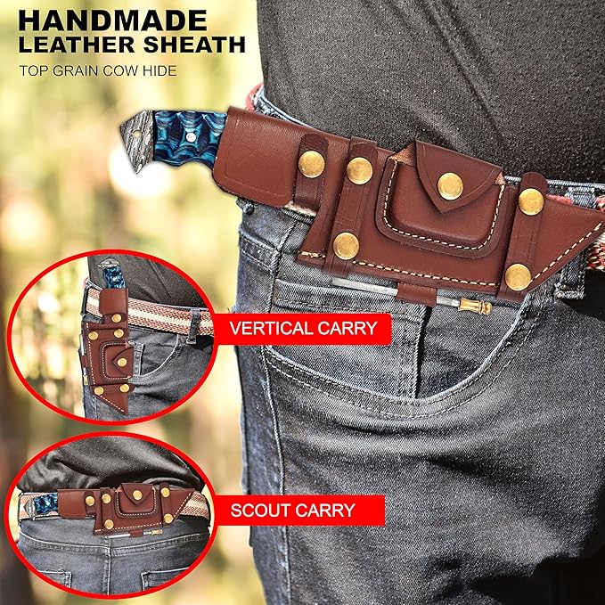 - SHEATH CARRY STYLE: - Our Bushcraft Knife can be carried in two different ways: 1-Right hand Front Cross draw. 2-Left hand for scout carry position.